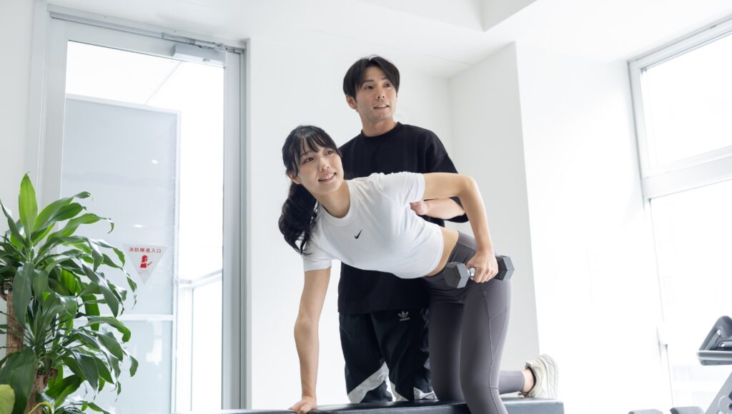 4.カウンセリングでお話しした内容を元にトレーニング体験を行っていきます。トレーニング前にインボディーで測定するので筋肉量、体重、体脂肪を細かく見てお話もしていきます