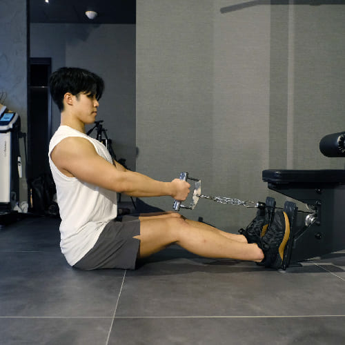 肩甲骨あたりから少し外にかけて背中に大きく効かせることができます。背中に筋肉が付くと回転力も上がります